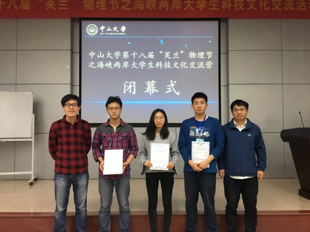 (通讯员 阎宝岩)近日,我院选派3名优秀本科生刘志峰、张忆舟、张子昂,在实验中心陈宗强老师、学院团委阎宝岩老师的带领下,参加第十八届“芙兰”物理节之海峡两岸大学生科技文化交流活动,并取得优异成绩。