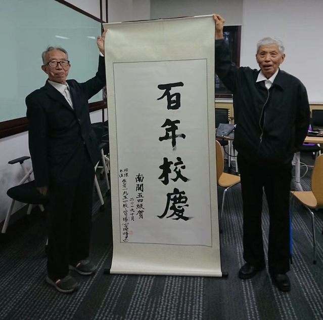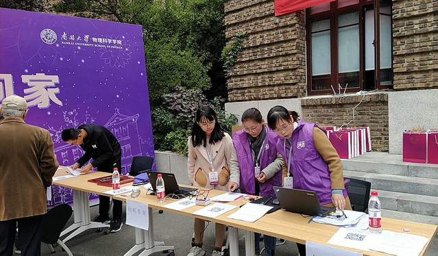 在集中返校报到日,学院老师带领二十余名志愿者早早到达工作地点,为来自五湖四海的校友提供热情的服务。校友们报到后领取学校为返校校友精心准备的纪念品,参观校园,了解学校及学院发展。部分校友向学院赠送了书法作品,以表达对百年南开最美好的祝愿,还有众多校友捐款超过25万元支持学院事业发展,其中81级校友刘道志、82级校友张忠民夫妇捐款10万元用于学院伯苓班的书院建设,校庆期间学校主楼上演的灯光秀表演的部分内容也是由82级物理系校友捐赠的。