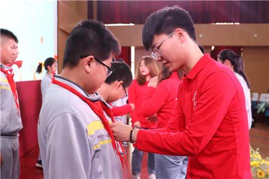 在精彩绝伦的宣讲后,南开大学青年宣讲团成员为空港学校八年级“中国故事小讲师团”队伍佩戴讲师团勋章,以此激励空港学校小讲师团秉承“自理自学,勇争第一”的学风,在回顾国家英雄们的光辉岁月感受着一份份赤子之心的同时,接续讲好中国故事,做好传承民族气节的实践者。
