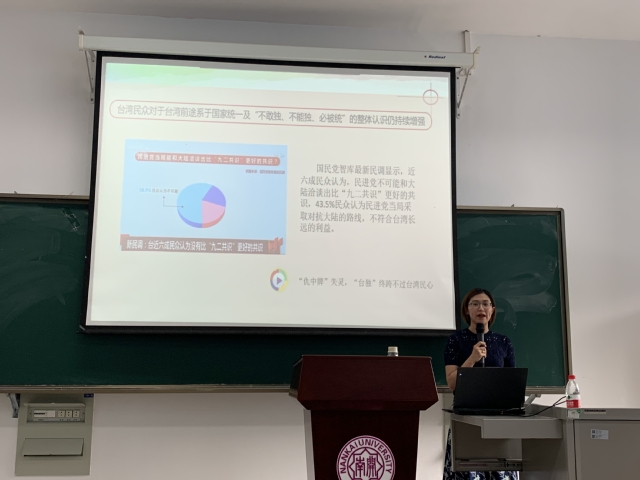 (通讯员 吴宵宵 马润泽)5月27日,物理科学学院形势与政策课在三教301举行,讲座邀请到了经济学院台湾经济研究所副研究员李月老师,她为学院700余名本科生讲授了“正确认识两岸关系发展新的形势”主题讲座。