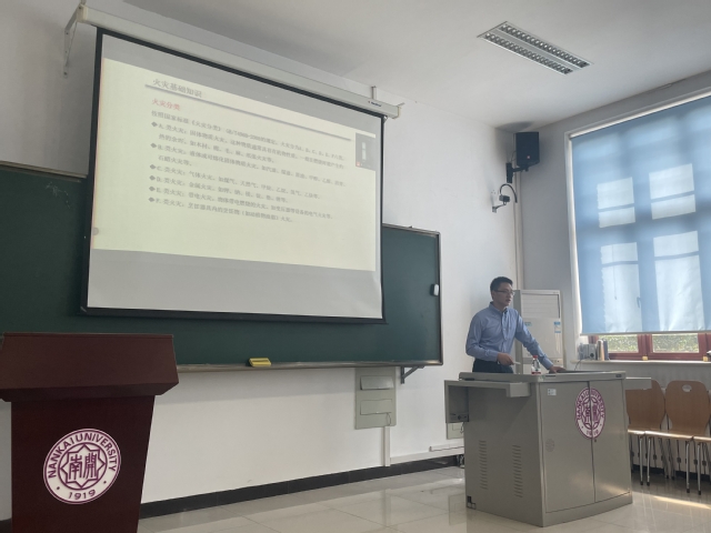 活动伊始,南开大学保卫处王代朝老师首先为学院本硕博新生做了消防安全知识讲座,由于疫情防控的原因,本次讲座采取线下讲授与线上直播相结合的方式进行。王代朝老师用视频和互动游戏等有趣的方式,从燃烧和火灾的基础知识、高校火灾案例分析和同学们应该掌握的技能等方面,直观、生动、形象地进行了细致的讲解,使同学们对消防安全知识有了全面的了解。