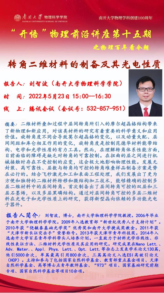 【“开悟”物理前沿讲座(第 15 期)】转角二维材料的制备及其光电性质
