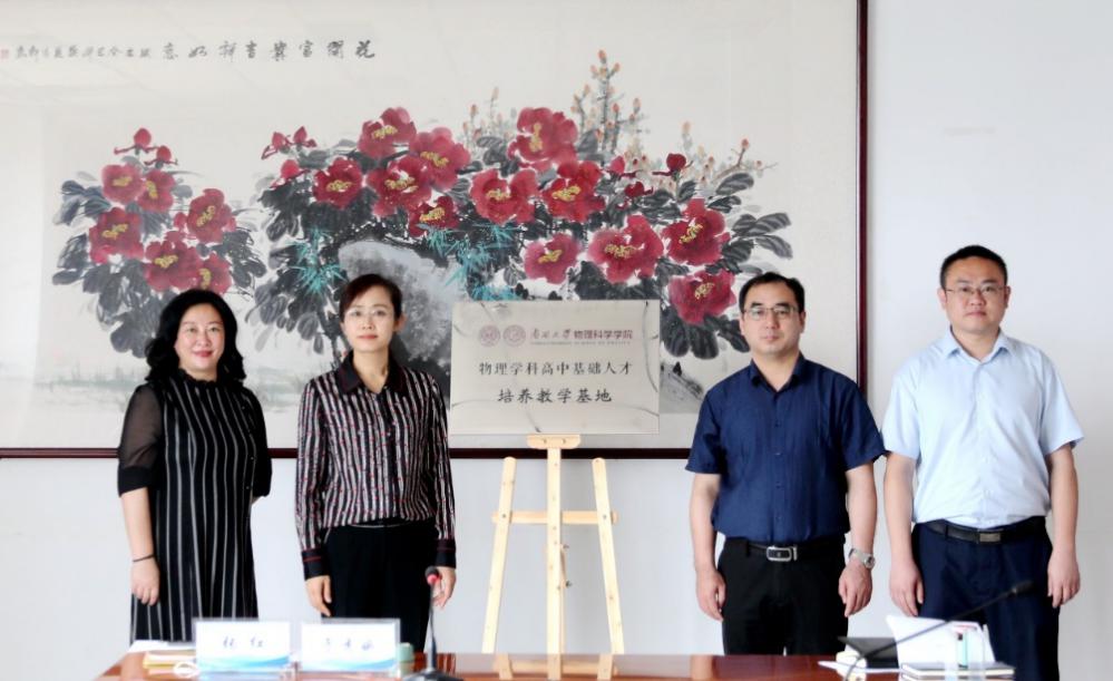 江苏省清河中学党委书记校长颜廷发、副校长于秀权共同为南开大学物理科学学院共建物理学科高中基础人才培养教学基地进行揭牌