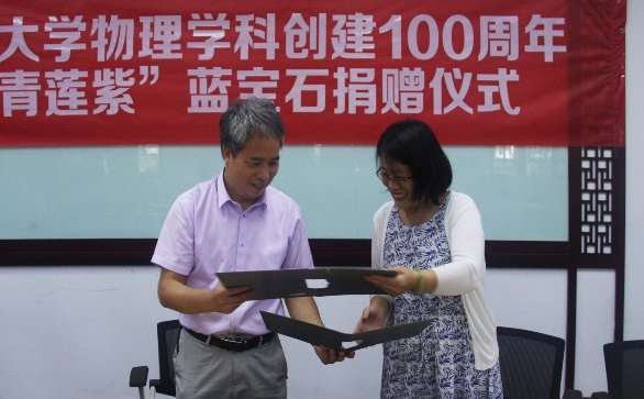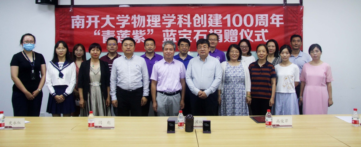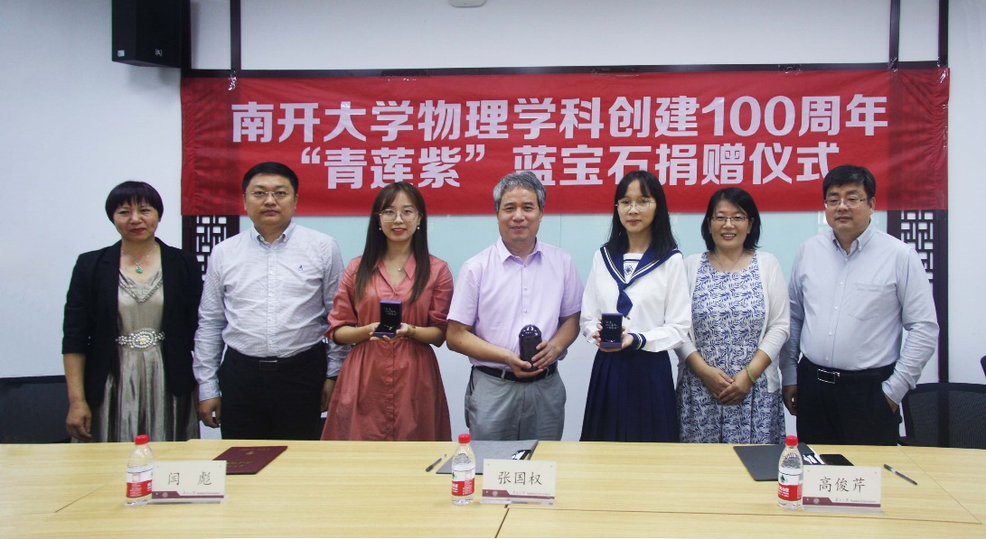 9月9日,南开大学物理学科创建100周年“青莲紫”蓝宝石捐赠仪式在K体育·(sports)官方网站第三教学楼举办。捐赠方代表、学校发展办、基金会负责人、物理科学学院负责人以及学院师生代表参加了仪式。