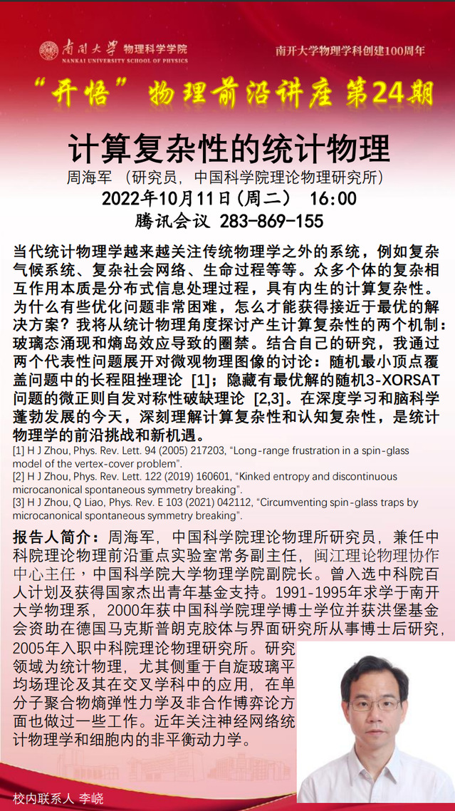 【“开悟”物理前沿讲座(第 24 期)】计算复杂性的统计物理