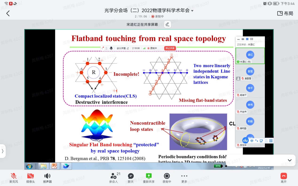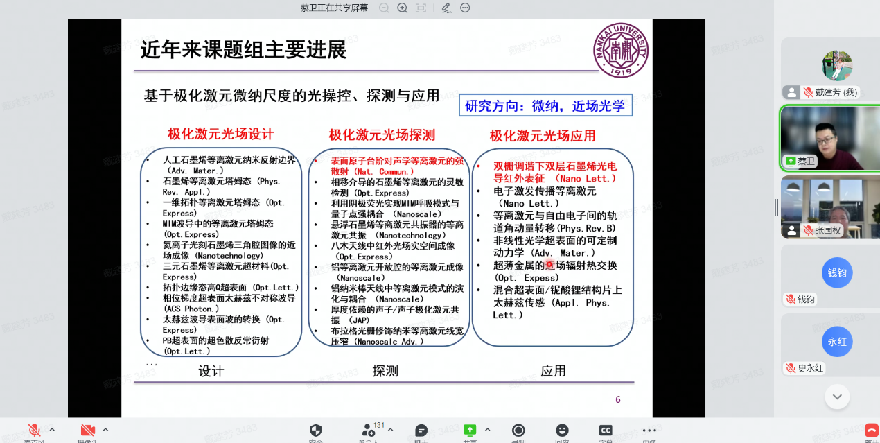 会议下午阶段进行了光学、理论、凝聚态物理、实验中心、博士后五个分会场报告,90余位教师就“课程思政”实践、学科前沿热点和创新性工作进行汇报展示,报告图文并茂,深入浅出,学科交叉,思维碰撞,激发灵感,满满一天的学术盛宴,让参与的师生受益匪浅,深受启发,为下一阶段工作开阔了思路。
