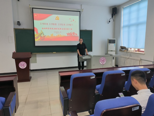 最后,由韩榕为新生党员讲授题为“主题教育学深悟透——以学铸魂 以学增智 以学正风 以学促干”的新生党员第一课。韩榕从党课题目的四个方面出发,结合研究生新生的科研学习生活、未来发展,寄语同学们怀抱梦想又脚踏实地,敢想敢为又善作善成,立志做有理想、敢担当、能吃苦、肯奋斗的新时代好青年,在新的奋斗征程上为党和人民作出更大贡献。
