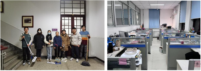 活动中,硕士第五支部党员们积极参与、情绪高涨,他们手持扫帚、拖把、簸箕等工具,有的清扫自习室过道、有的去到卫生死角里徒手清理纸皮废物、有的用拖把将地板仔细的拖干净。大家相互帮助、团结协作,认真、细致的打扫每个角落,确保卫生不留死角。
