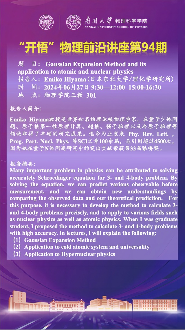 【“开悟”物理前沿讲座(第94期)】Gaussian Expansion Method and its application to atomic and nuclear physics