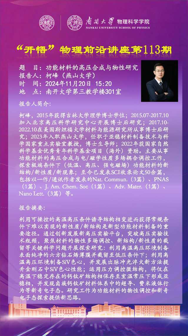 【“开悟”物理前沿讲座 (第113期)】功能材料的高压合成玉物性研究