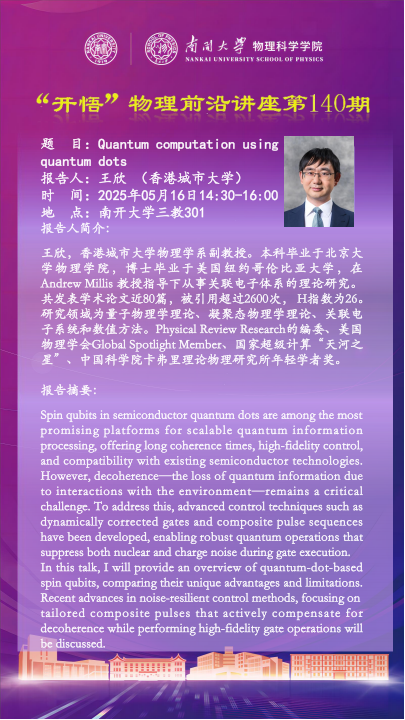 【“开悟”物理前沿讲座 (第140期)】Quantum computation using quantum dots