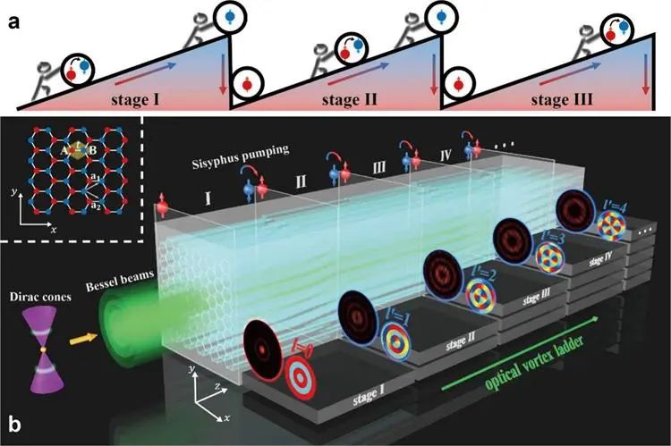 2024年9月,夏士齐为共同第一作者的相关研究成果在线发表在国际重要学术期刊Nature Communications(自然-通讯),团队首次实现西西弗斯泵浦下的光涡旋阶梯。
