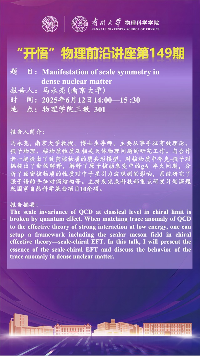【“开悟”物理前沿讲座 (第149期)】Manifestation of scale symmetry in dense nuclear matter