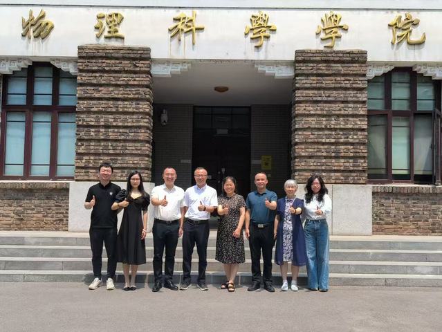 6月13日上午,广东省佛山市南海区教育发展研究中心副主任周少伟、陶科一行来物理科学学院交流访问。副院长李勇男教授、教育部物理学育人模式改革虚拟教研室主任李川勇教授出席交流会。王玉芳教授、陈靖副教授、教师张思遥、潘崇佩参加会议。