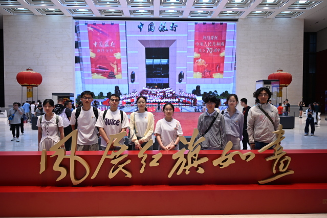 实践队首先来到国家博物馆,从学习中国共产党的发展历程,到感受当今科技的力量,以红色精神激励科研报国之志。实践队参观了“风展红旗如画——馆藏红色经典文物展”展出的革命年代红旗、新中国成立后的五星红旗和党旗、革命题材经典美术作品等红色文物,同学们纷纷感叹国家发展的不易与新时代的壮美。随后,实践队参观了“科技的力量”专题展,上起甲骨文中的日食记录和干支表,下至“墨子号”量子科学实验卫星等当代科技成就,同学们从科技的发展历程中感悟了作为基础学科青年党员义不容辞的历史使命。