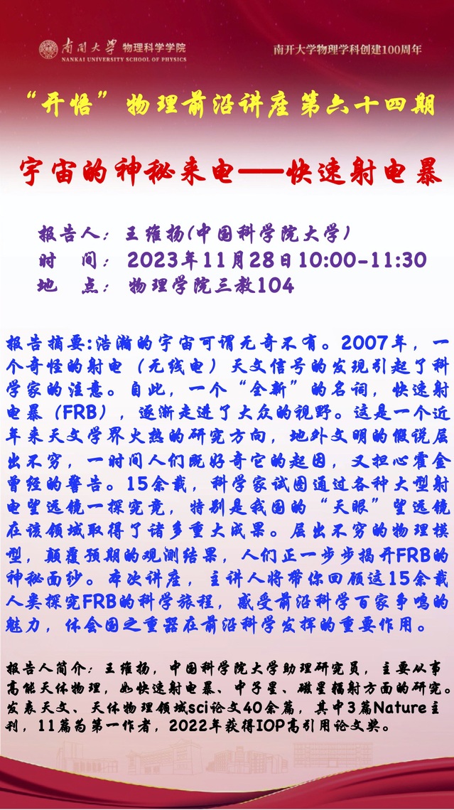 Kaiwu Lecture 64: A mysterious call from the universe——Fast Radio Bursts