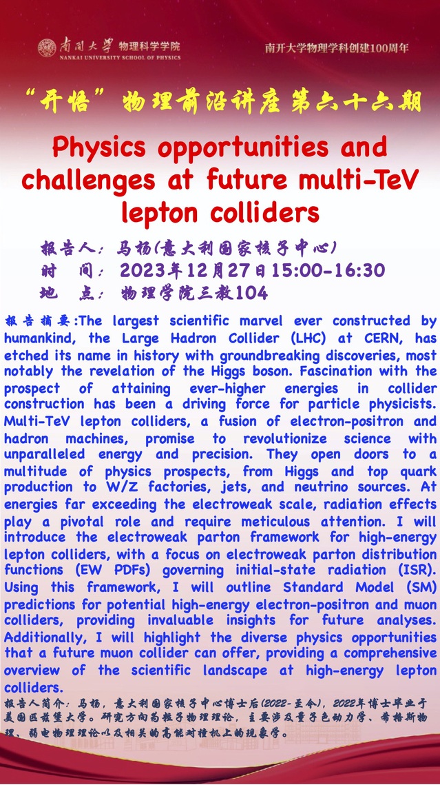 Kaiwu Lecture 66: Physics opportunities and challenges at future multi-TeV lepton colliders